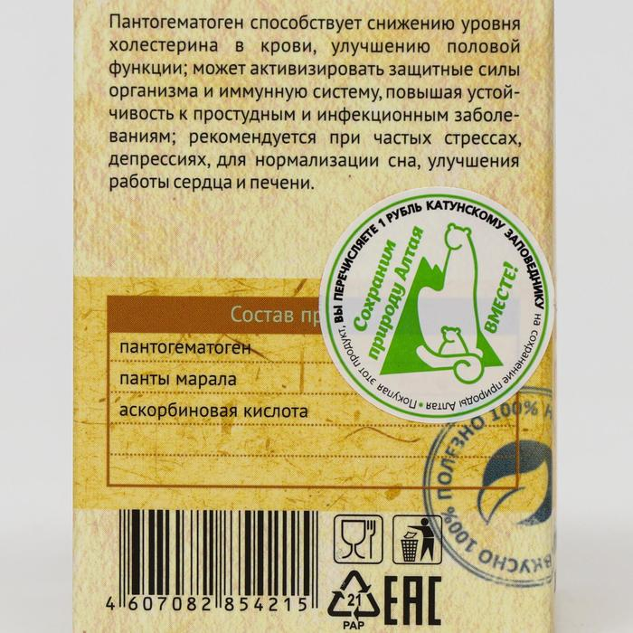 Состав: пантогематоген, панты марала, аскорбиновая кислота.