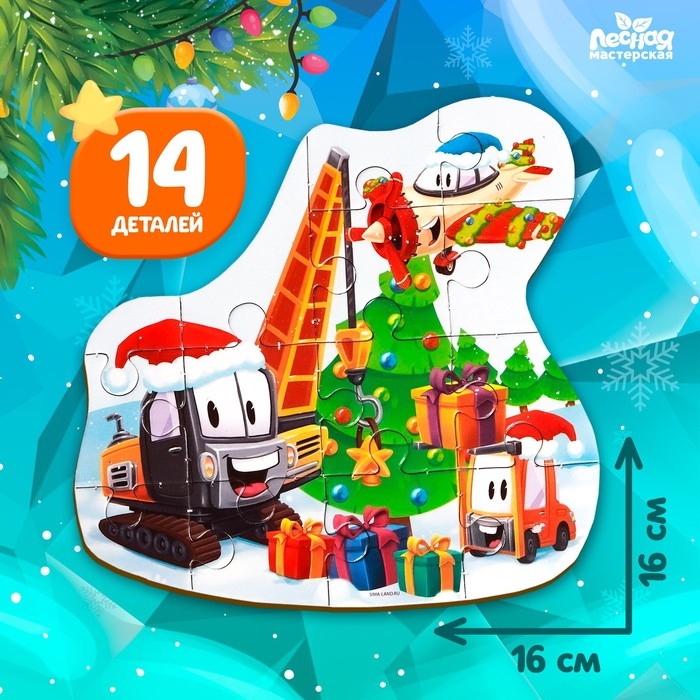 Деревянный пазл «Новый год! Машинки»