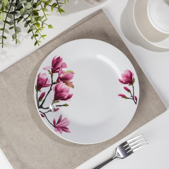 Тарелка керамическая десертная Доляна «Сакура», d=19 см, цвет белый