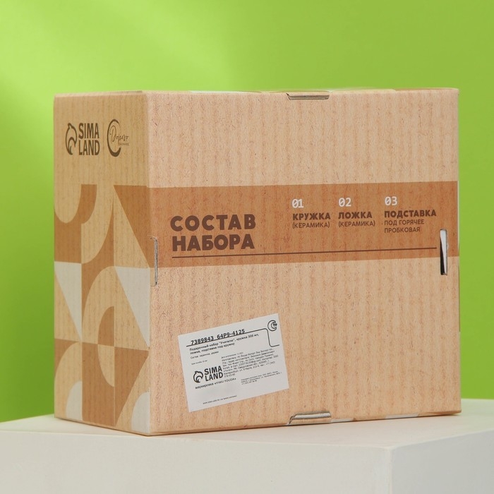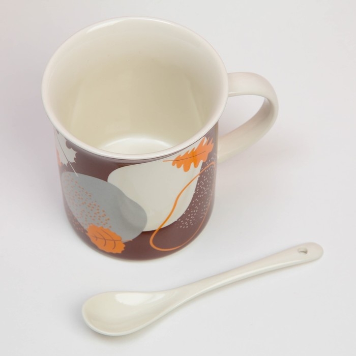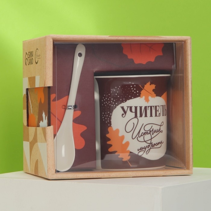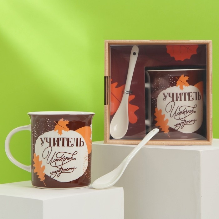 Кружка керамическая «Учителю» с ложкой и подставкой, 300 мл, цвет коричневый