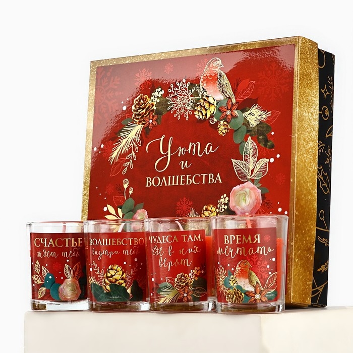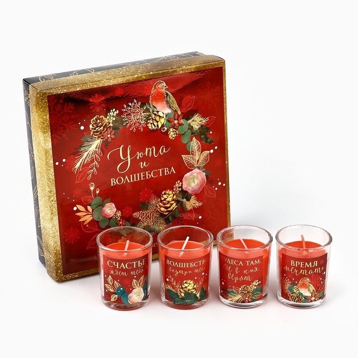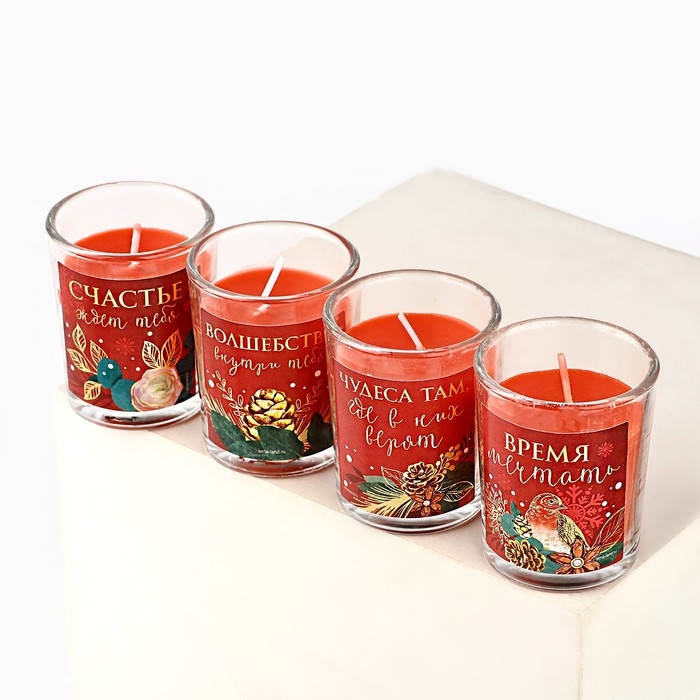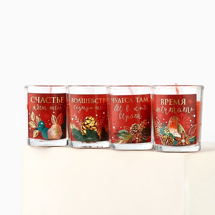 Свечи в стакане новогодние «Новый год: Уюта и волшебства», набор, 4 шт., аромат вишня