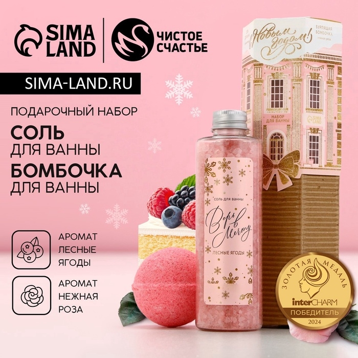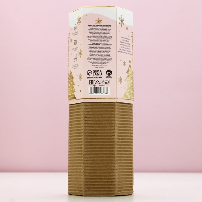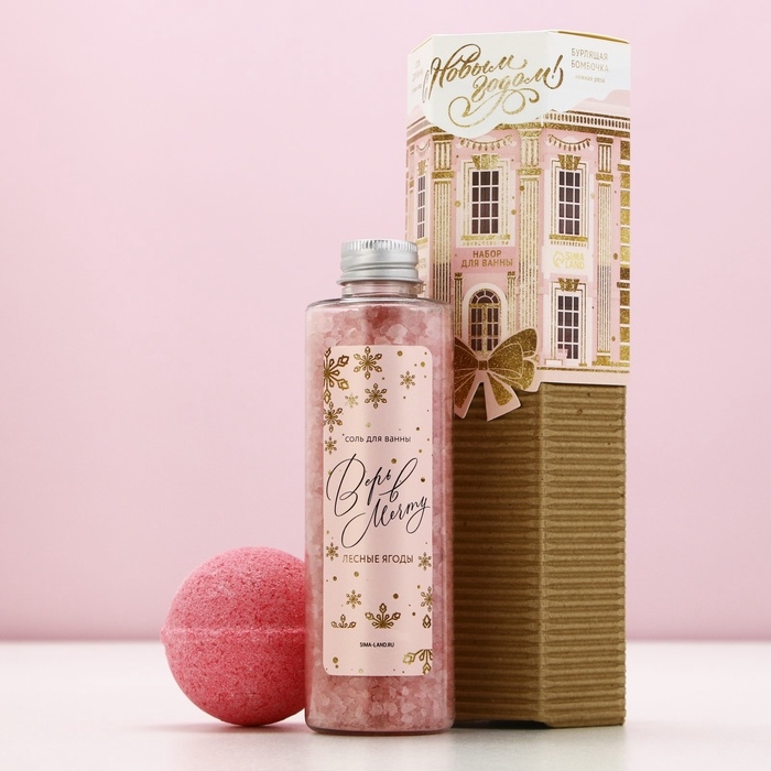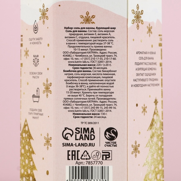Подарочный набор новогодний ЧИСТОЕ СЧАСТЬЕ «С праздником»: соль для ванны 220 г и бомбочка для ванны 130 г