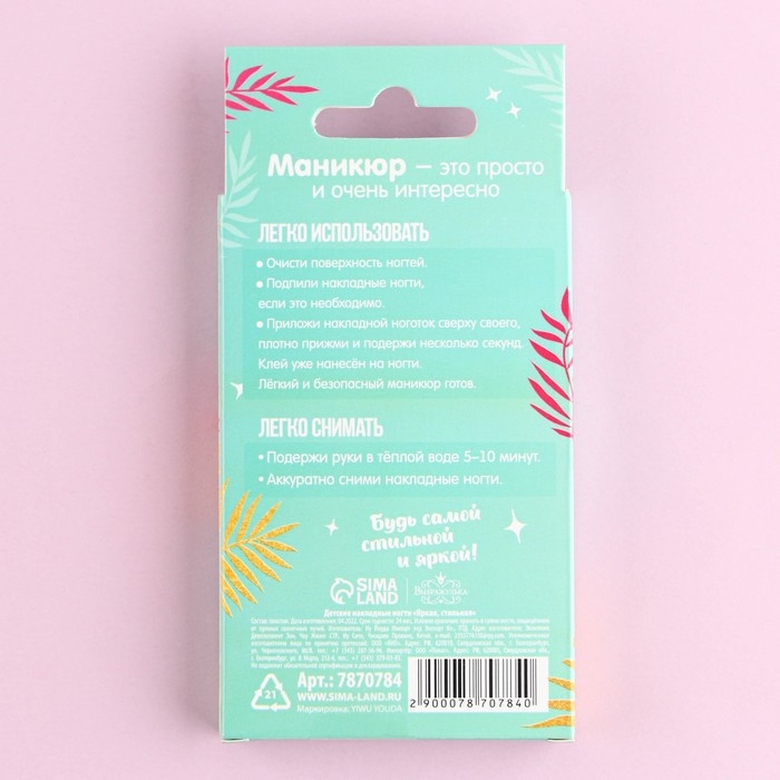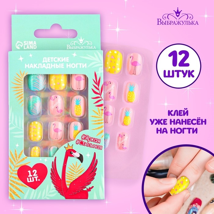 Детские накладные ногти «Яркая, стильная», 12 шт