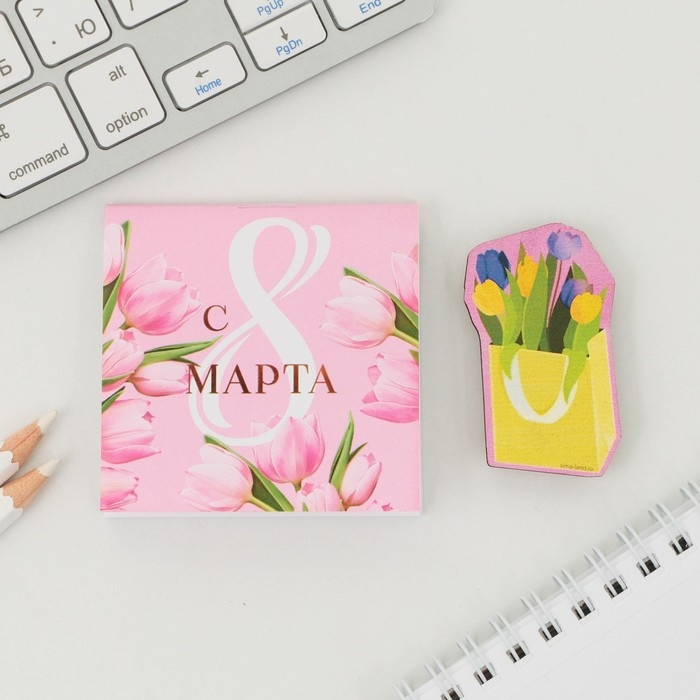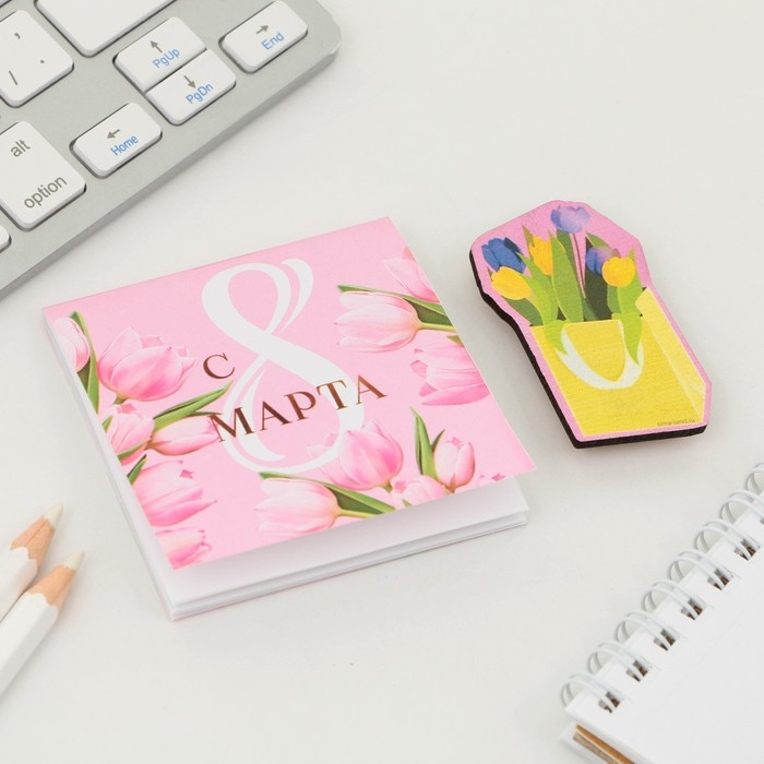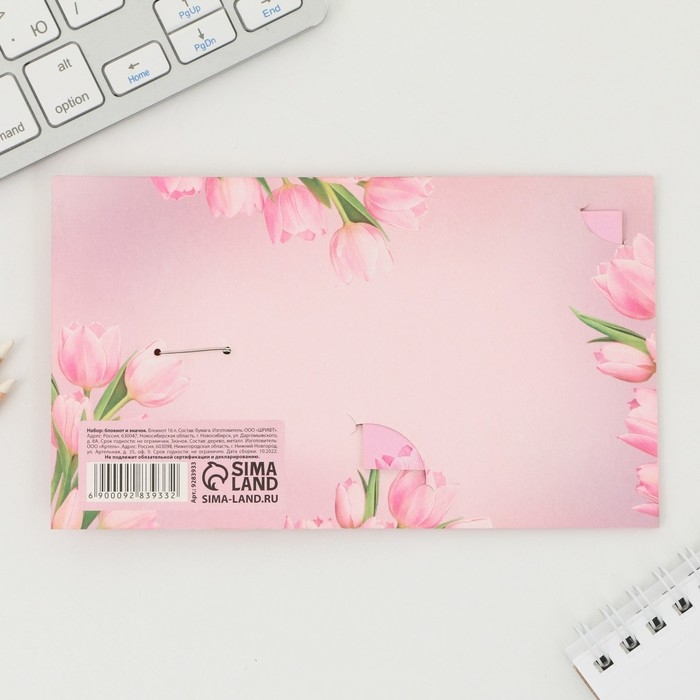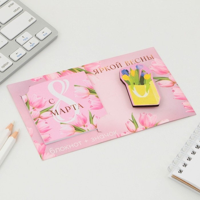 Подарочный набор: блокнот и значок «8 марта: Яркой весны»