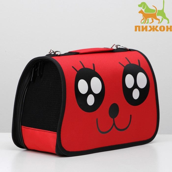 Сумка - переноска для животных "Весёлый жук", красная, размер S, 37,5 х 17 х 22 см 477761