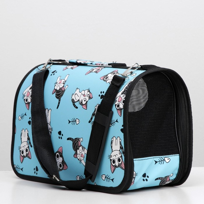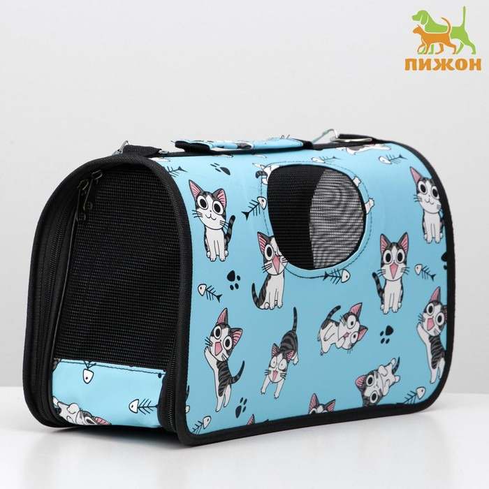 Сумка - переноска для животных "Играющие котики", голубая, размер S, 37,5 х 17 х 22 см