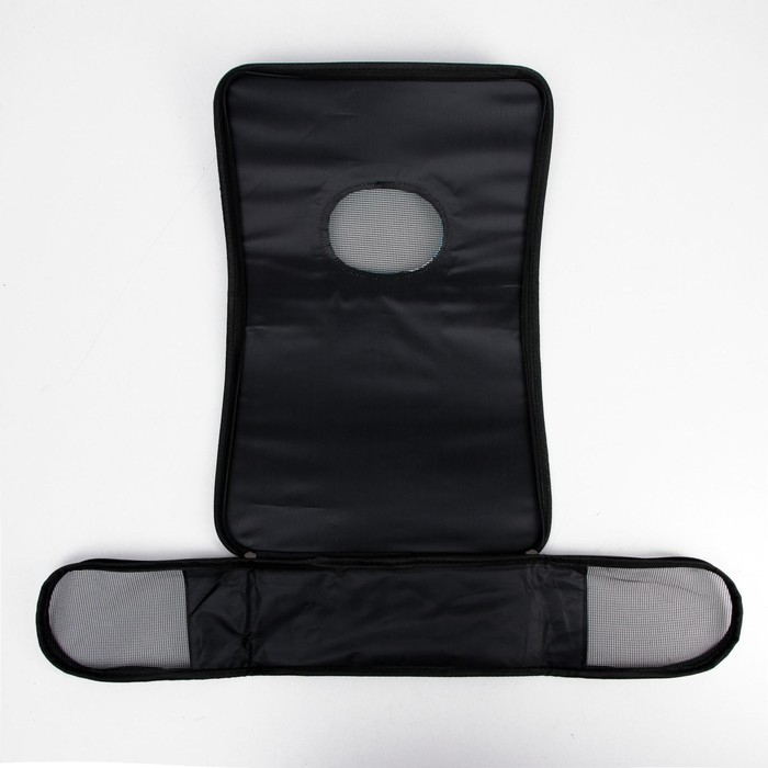 В дно переноски вшит плотный картон, который обеспечивает твердую основу и защищает животное от вибраций и ударов. Прозрачная сетка позволяет питомцу наблюдать за окружающим миром и получать достаточно свежего воздуха.