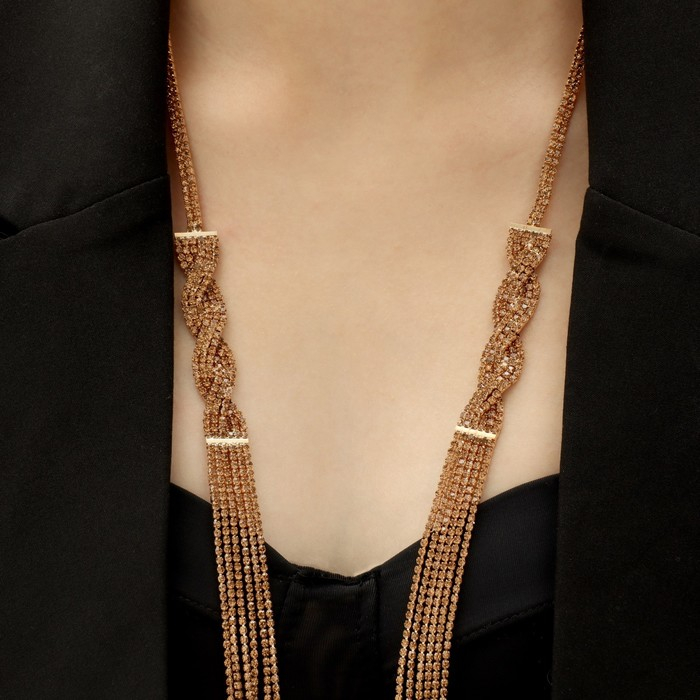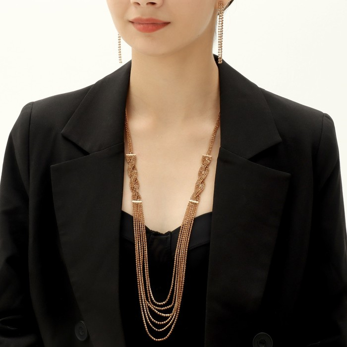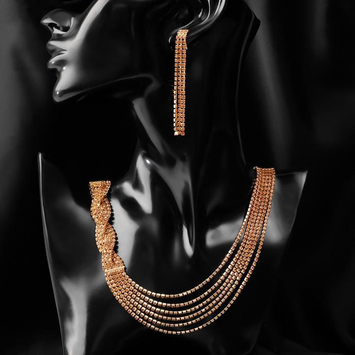Набор 2 предмета: серьги, колье «Лёд» косичка, цвет золото, 80 см