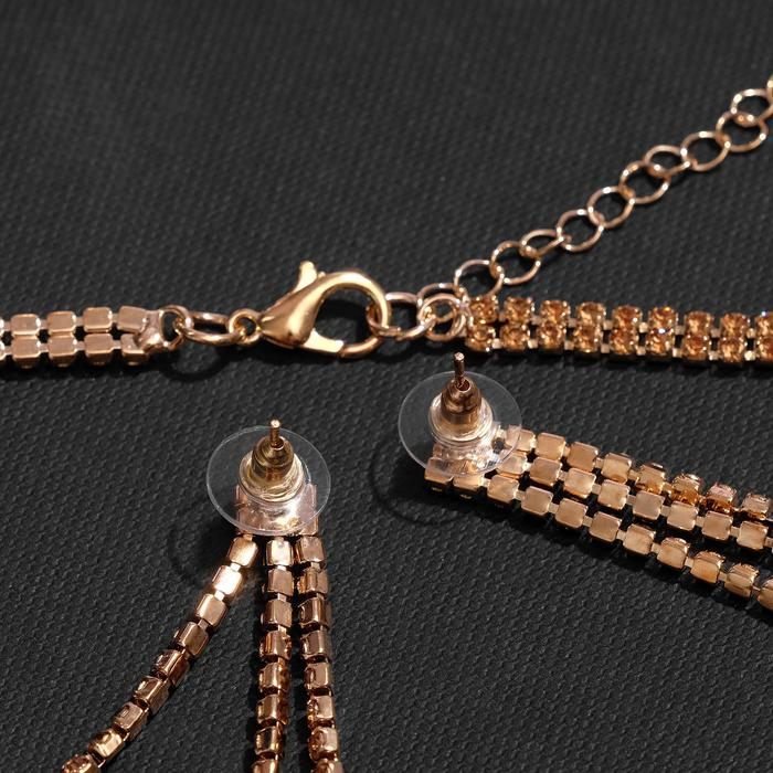 Набор 2 предмета: серьги, чокер «Лёд» 4 ряда, цвет белый в серебре, 44,5 см