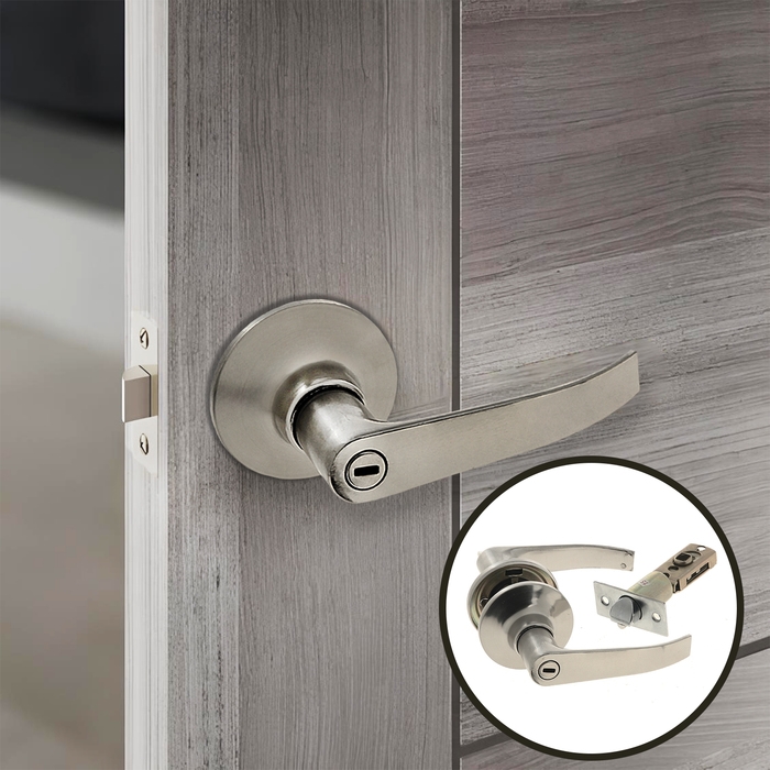 Конструкция защелки включает в себя цельный механизм с ручкой и защёлкой, обеспечивая удобство и простоту использования. Металлический материал гарантирует долговечность и надежность, подчеркивает лаконичность и минимализм дизайна. Фиксатор подходит для врезной установки в межкомнатные двери, украшая их своим современным видом без лишних деталей.