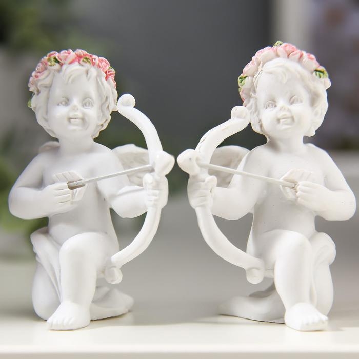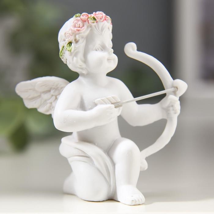 Сувенир полистоун "Купидон" в венке из роз, МИКС, 6,5х6х5 см