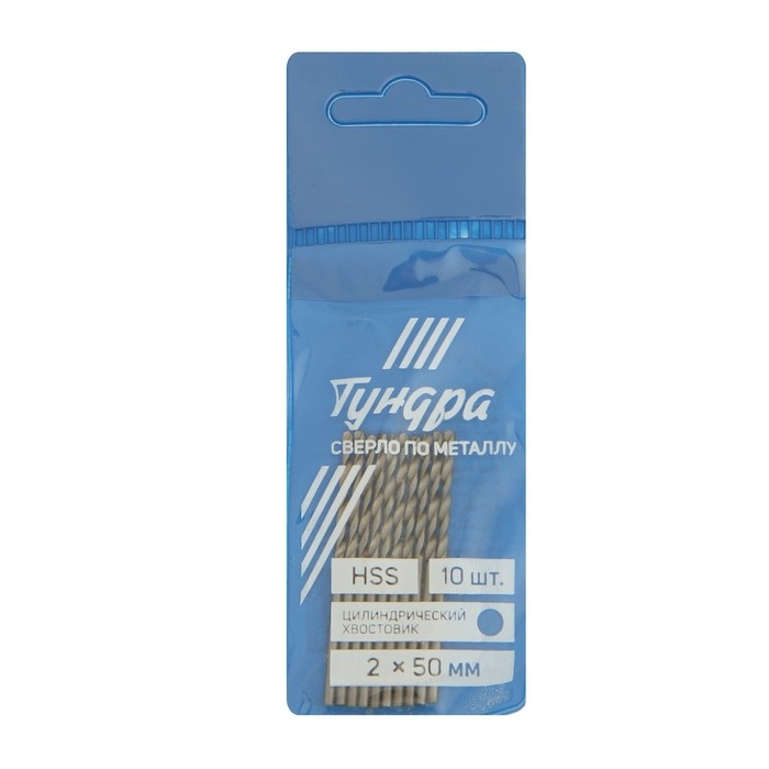 Сверло по металлу ТУНДРА, HSS, цилиндрический хвостовик, 2 х 50 мм, 10 шт.