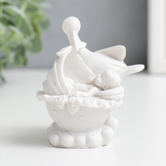Фигурка полистоун "Аист с малышом" 7,5х5х6,2 см