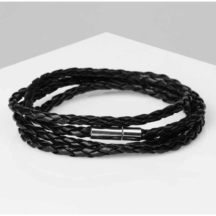 Браслет унисекс «Кожаное плетение», цвет чёрный с серебром, 82 см