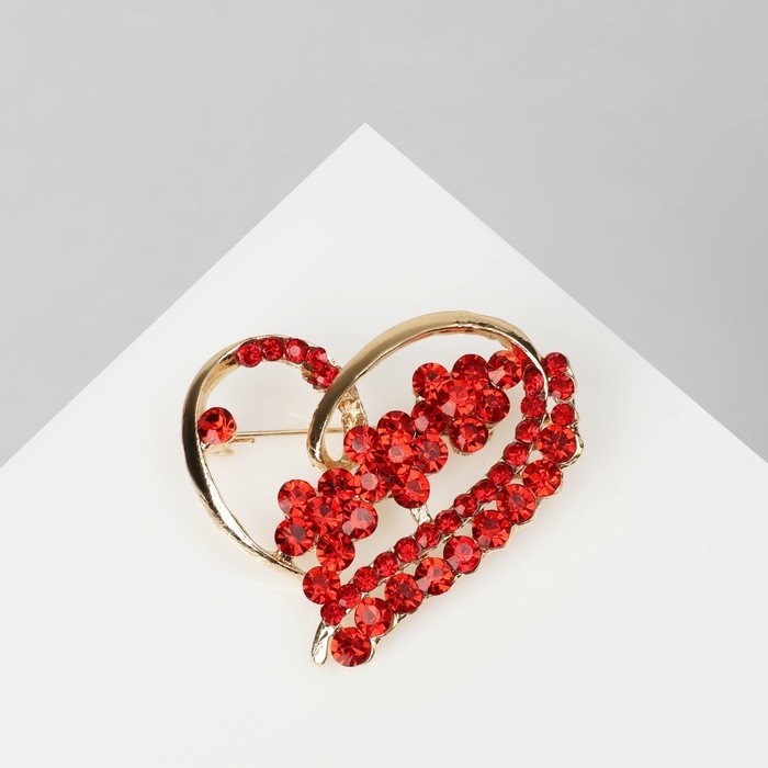 Брошь «Сердце» с цветами, цвет красный в золоте