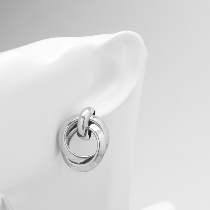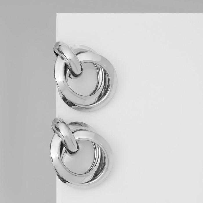 Серьги металл «Геометрия» круги на кольце, цвет серебро