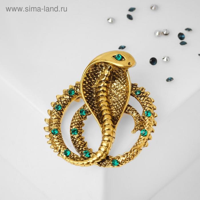 Брошь «Змея» кобра клубок, цвет зелёный в чернёном золоте