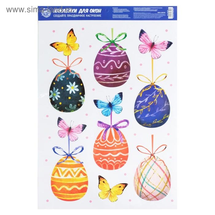 Наклейки витражные «Бабочки» на пасху, 33 х 50,5 см