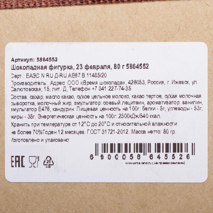 Бельгийский шоколад, «23 февраля», 80 г