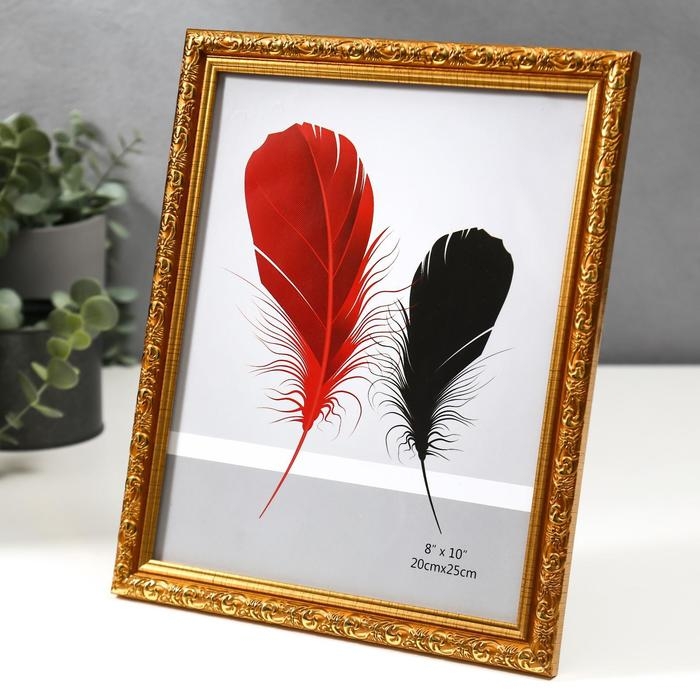 Фоторамка пластик 20х25 см "Валентайн" золотая с золотым рисунком 28х23 см
