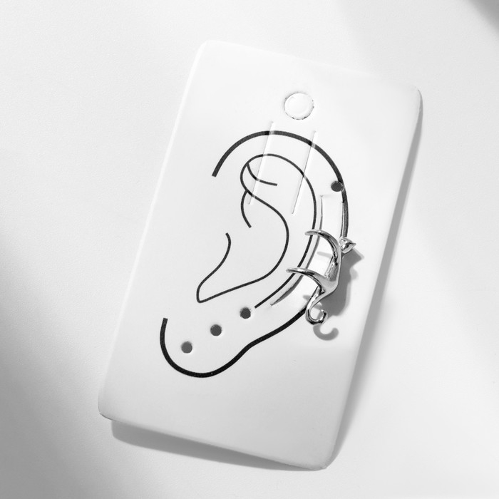 Серьга «Кафф» северная звезда с цепью, цвет белый в серебре