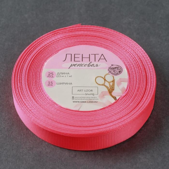 Лента репсовая, 15 мм, 23 ± 1 м, цвет неоново-розовый №14