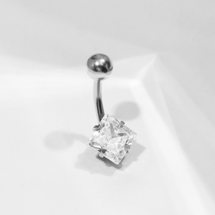 Пирсинг в пупок «Банан» ромб, L=2 см, цвет белый в серебре
