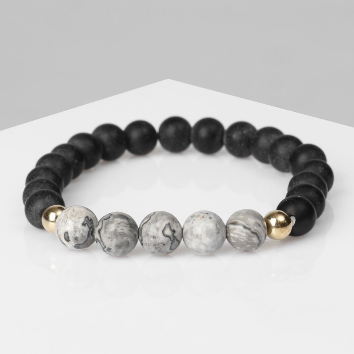 Браслет унисекс «Друиды» камень, цвет чёрно-серый, d=7 см