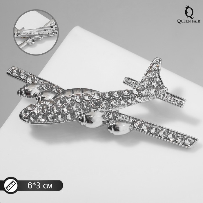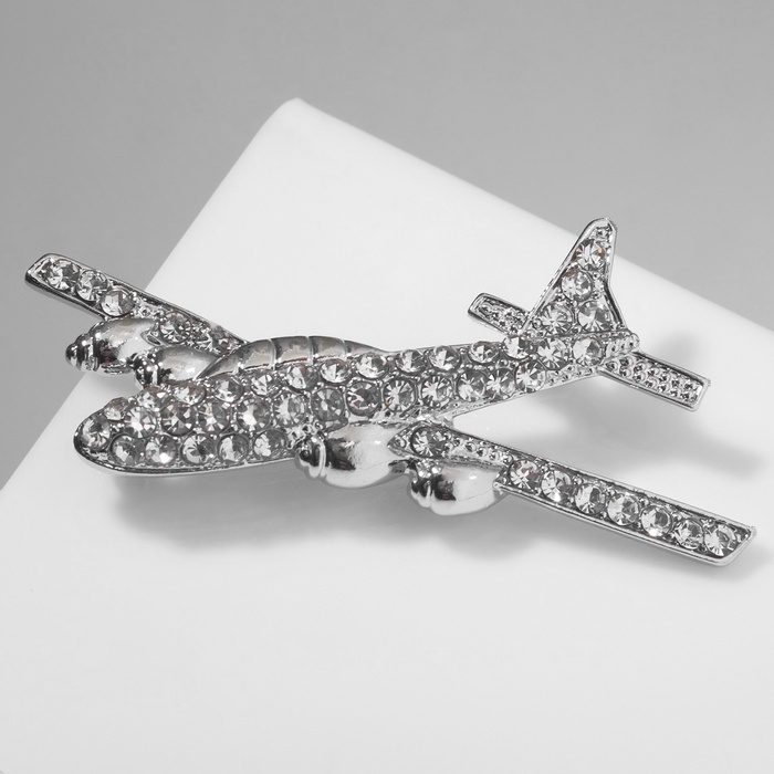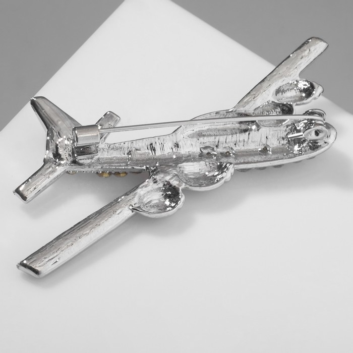 Брошь «Самолёт» парящий, цвет белый в серебре