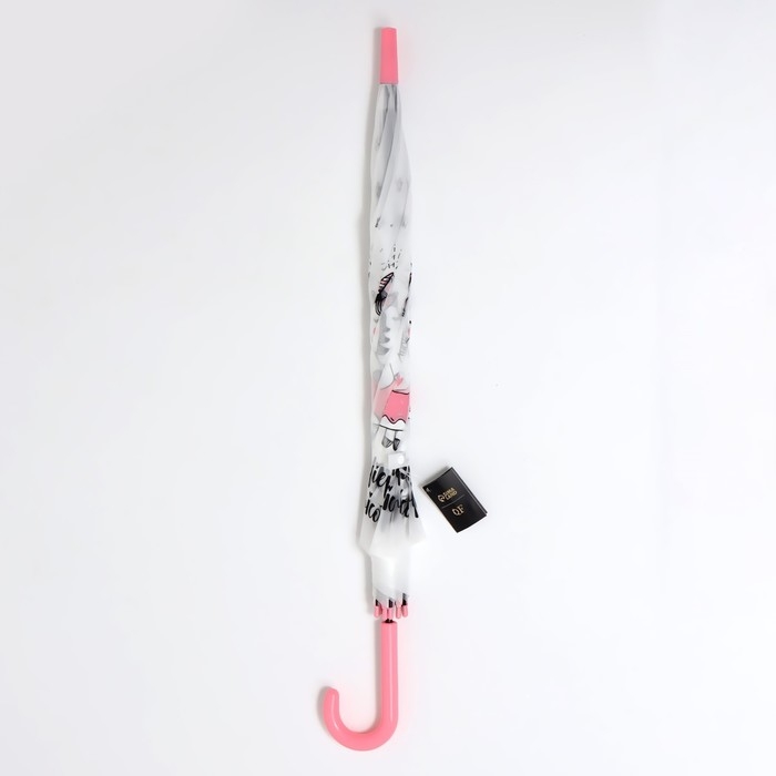 Зонт - трость полуавтоматический «Единорог», 8 спиц, R = 47 см, цвет белый/розовый