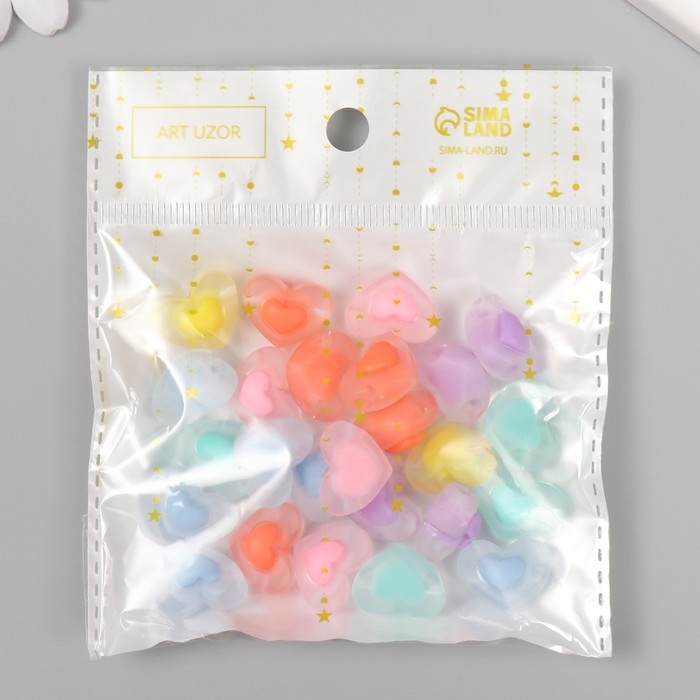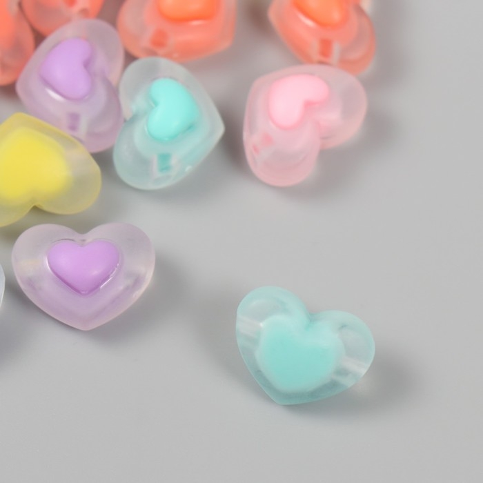 Бусина акрил "Сердце в сердце - матовое" набор 25 шт разноцветные 1х1,7х1,3 см