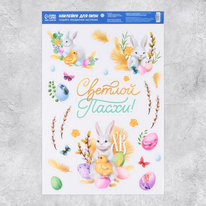 Наклейки витражные «Пасхальная композиция» на пасху, 33 х 50,5 см