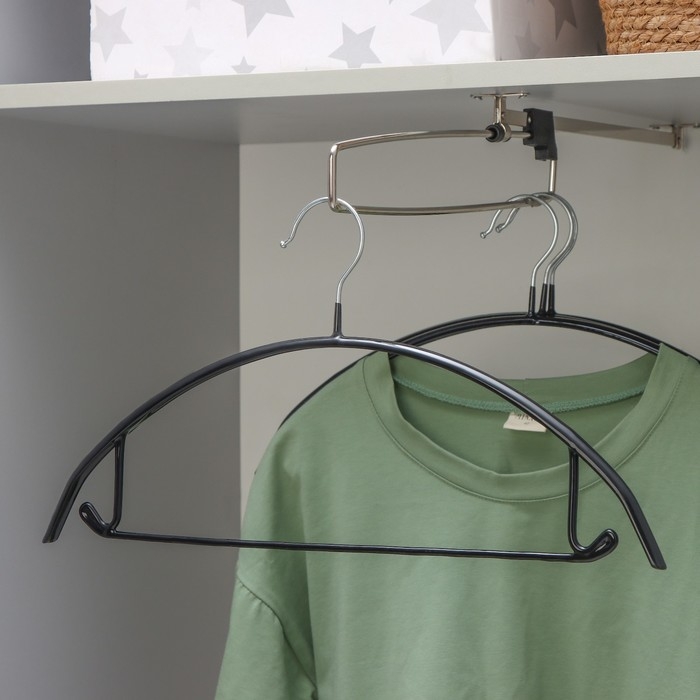 Плечики - вешалки для одежды Доляна, 38×40 см, многоуровневая, съёмные вешалки, антискользящее покрытие, цвет чёрный