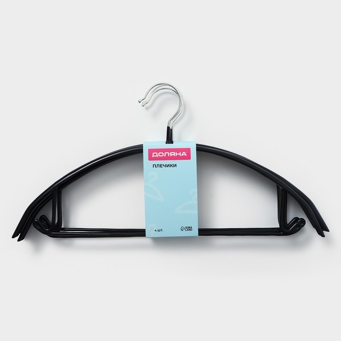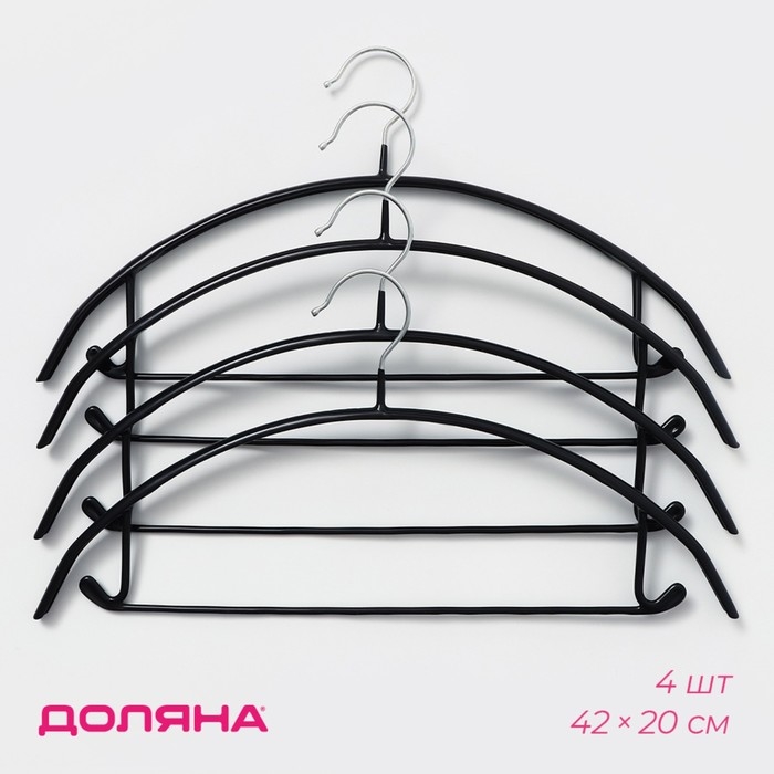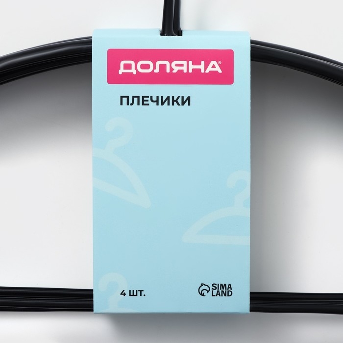 Плечики - вешалки для одежды Доляна, 42×20 см, 4 шт, антискользящее покрытие, цвет чёрный