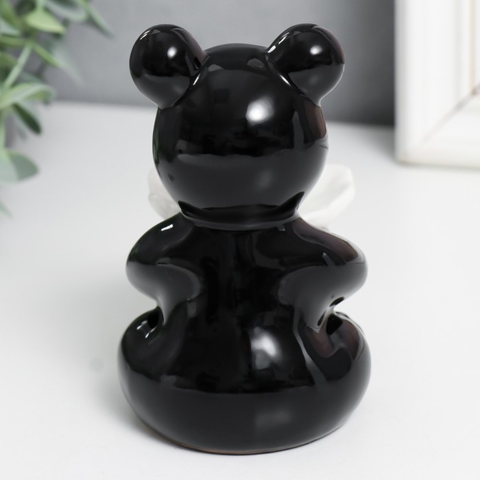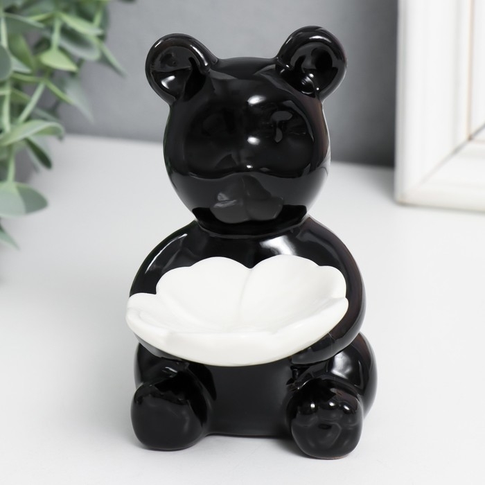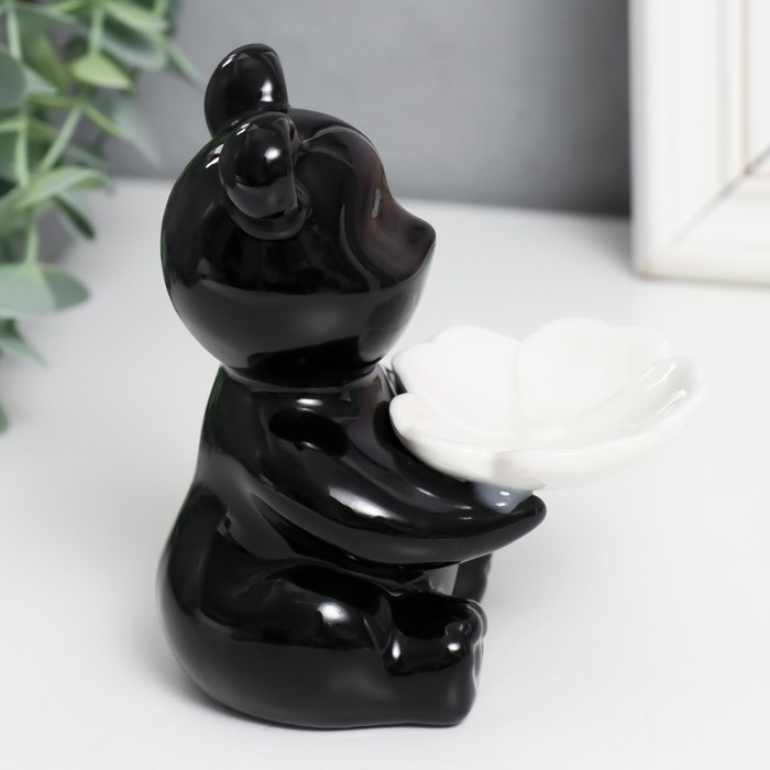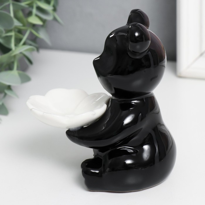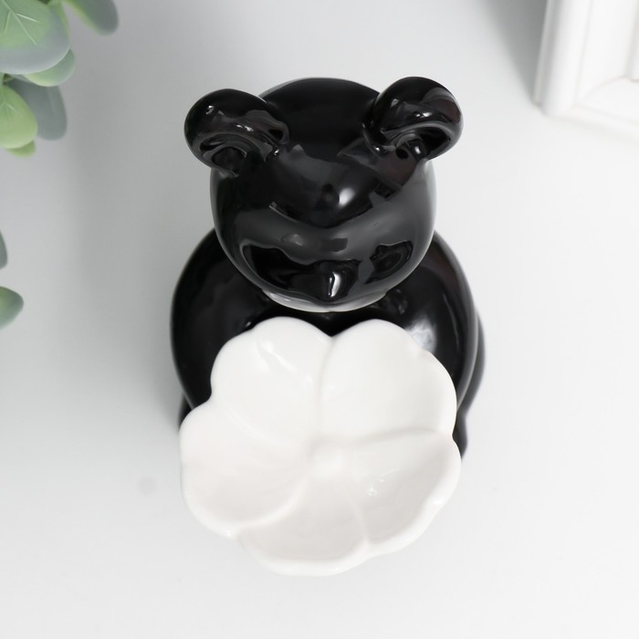 Сувенир керамика подставка "Мишка с белым цветком" чёрный 7х9х10,5 см