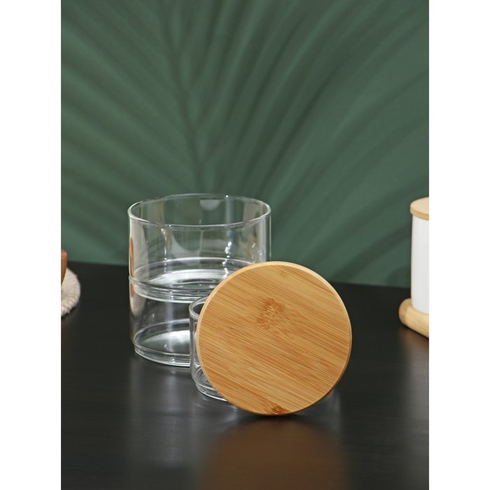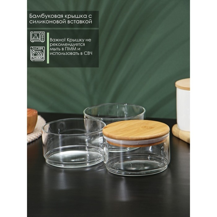 Банки стеклянные для сыпучих продуктов с бамбуковой крышкой BellaTenero «Эко», 500 мл, 11×18 см, 3 шт