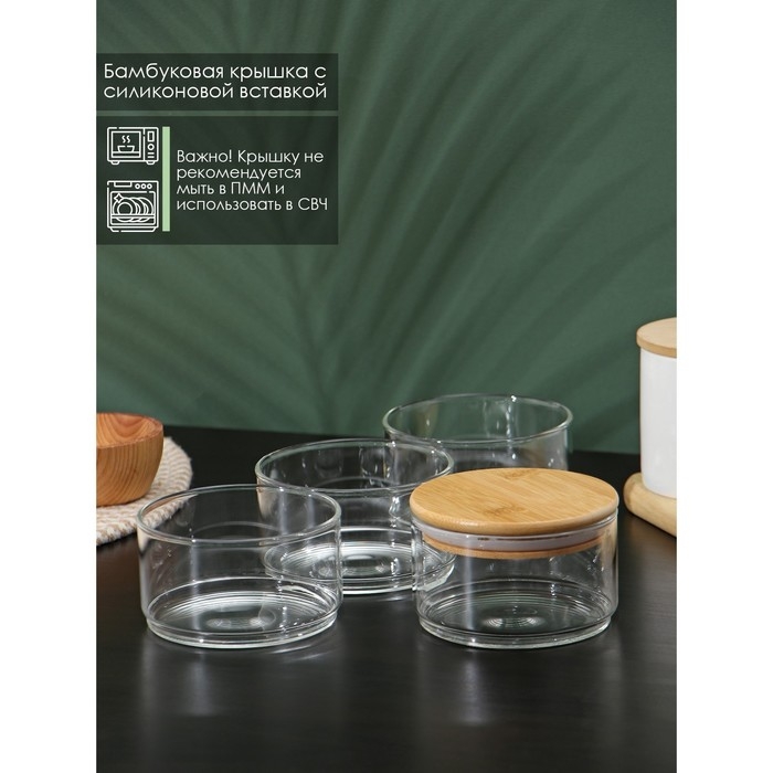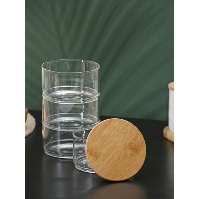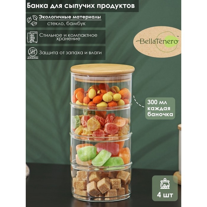 Банки стеклянные для хранения сыпучих продуктов BellaTenero «Эко», 300 мл, 10,2×21,5 см, с бамбуковой крышкой, 4 шт