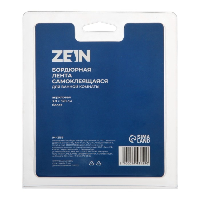 Лента бордюрная ZEIN, самоклеящаяся, для ванной комнаты, 3,8 х 320 см, акриловая, белая