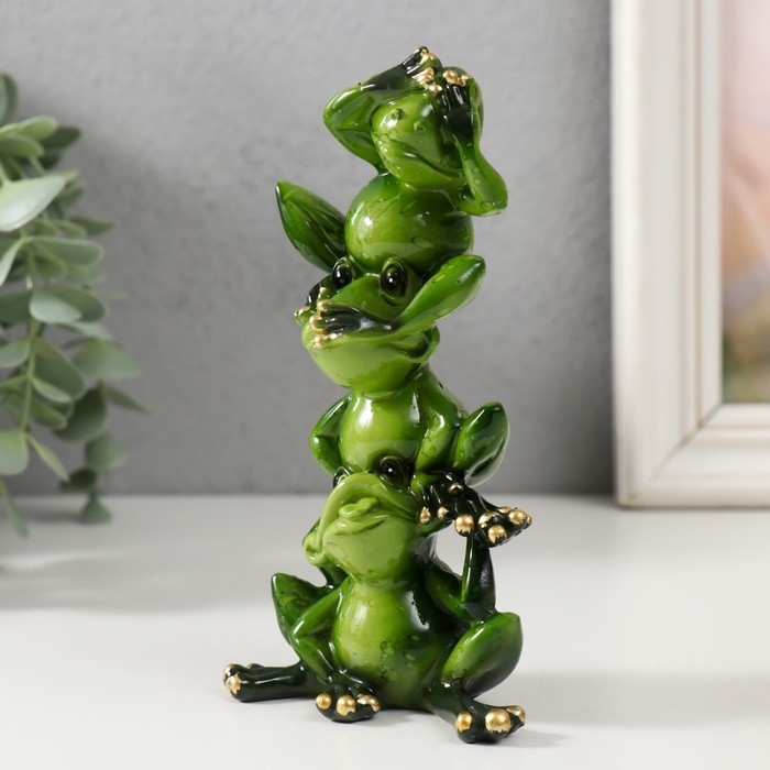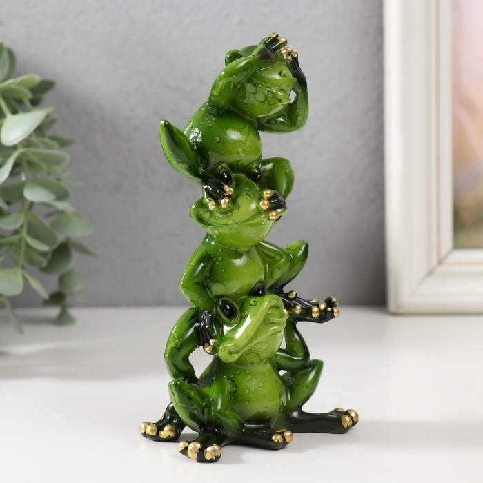 Сувенир полистоун лак "Пирамидка из лягушек" 14х7,5х5 см