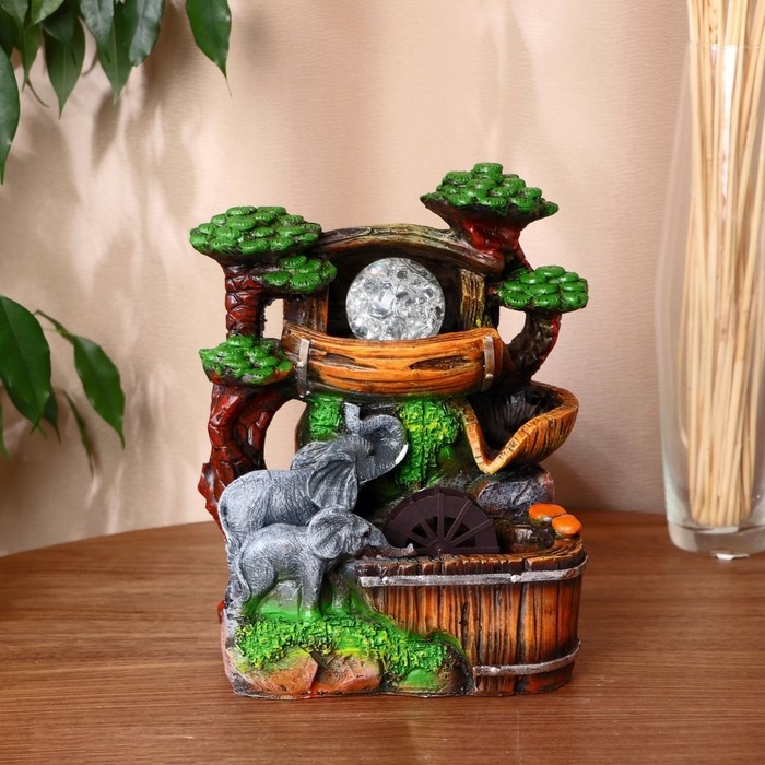 Фонтан "Слоны у воды под деревьями" 17х13х26 (с подсветкой)