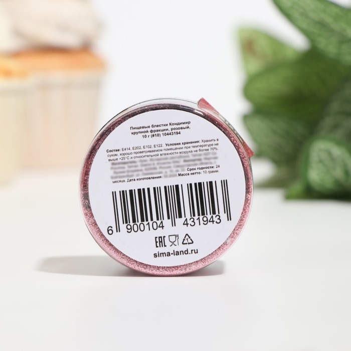 Пищевые блёстки КондиМир крупной фракции, розовые,10 г