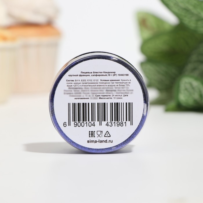 Пищевые блёстки КондиМир крупной фракции, сапфировые, 10 г