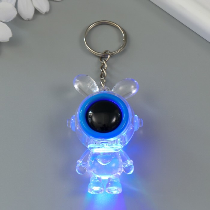 Фонарик свет на кольце "Зайчик-космонавт" синий, мигает LR41х3 шт 2х4х7 см
