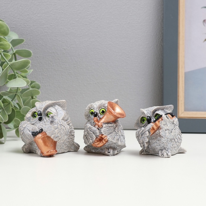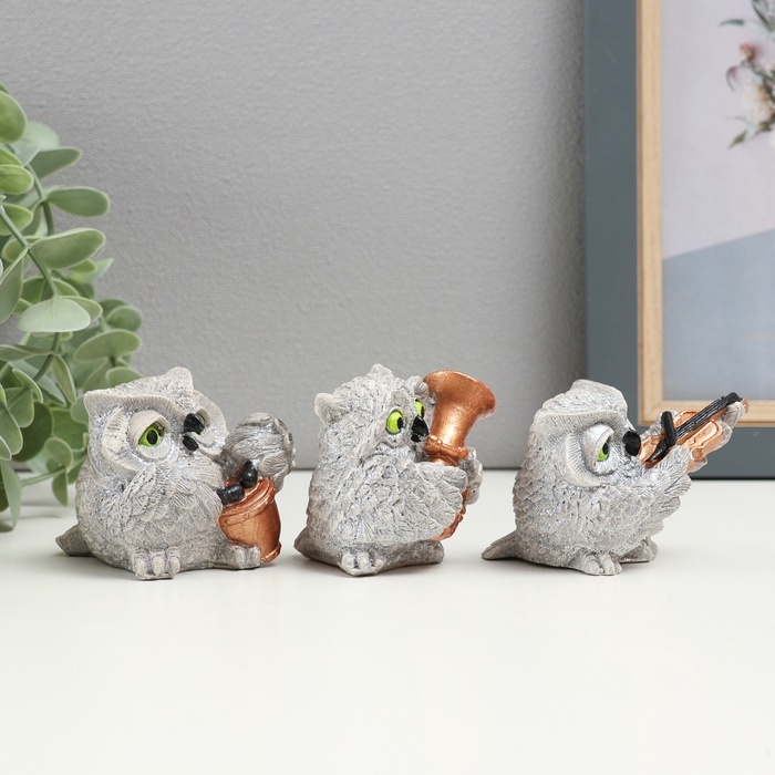 Фигуры "Совы Музыкальное трио" набор 3шт, 5см, серый