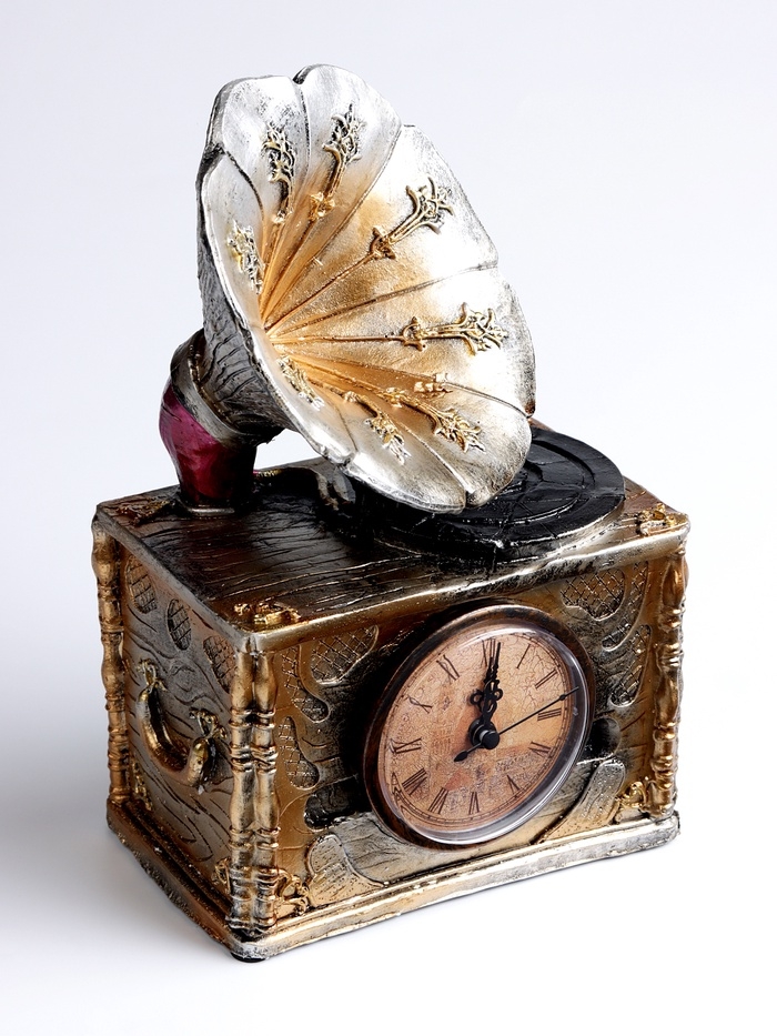 Часы настольные интерьерные, «Граммофон», на батарейках, 15.5×9.5×24.5 см, d-7 см