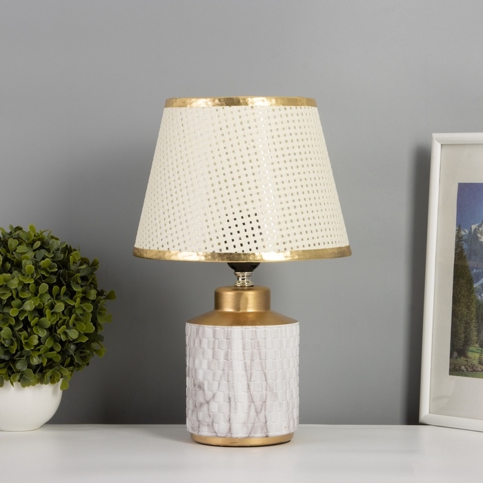 Лампа настольная "Мрамор" 1х40Вт Е27 белый/золото 22,5х22,5х35см