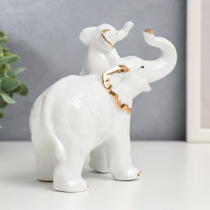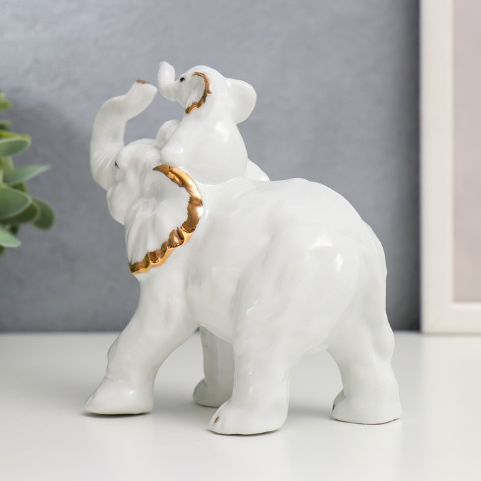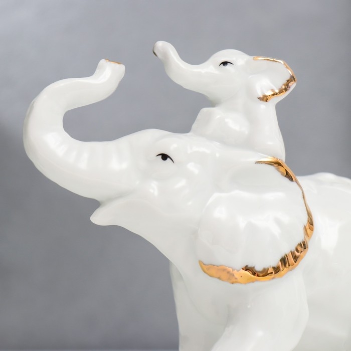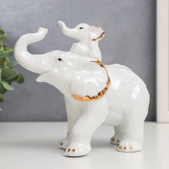 Фигурка керамика «Белый слон золотые ушки со слонёнком», 12×13×6.3 см