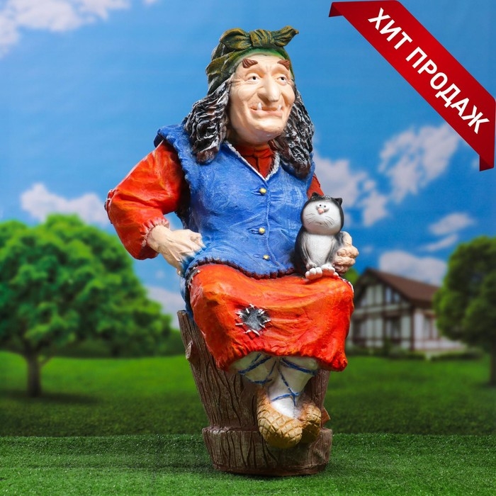 Садовая фигура "Теща с метлой средняя" 59х40х25см МИКС