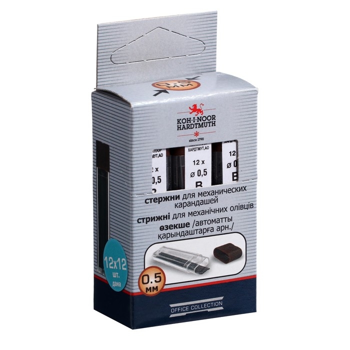 Грифели для механических карандашей 0.5 мм, Koh-I-Noor 4152 B, 12 штук, в футляре