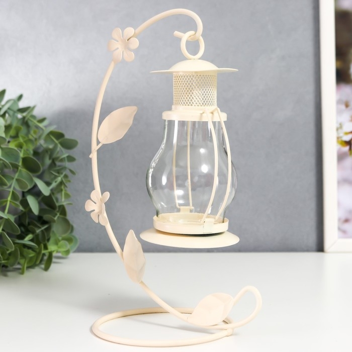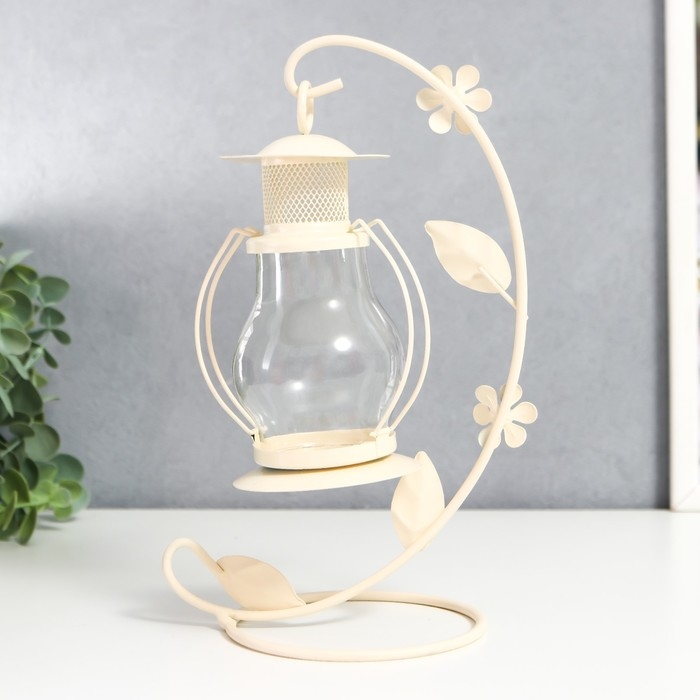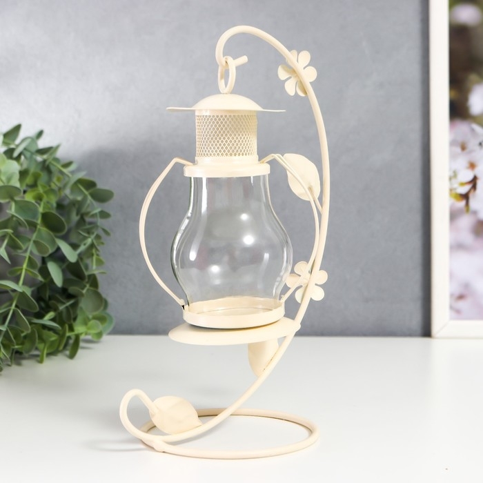 Подсвечник металл 1 свеча "Лампада", белый 14х10х22 см